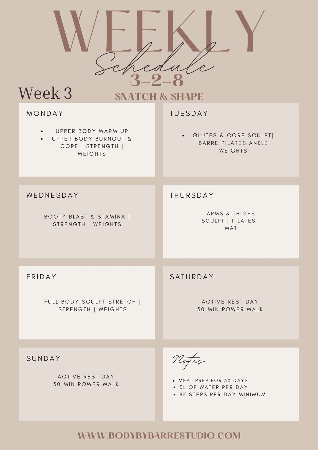Week 3 Schedule Suggestion for 3-2-8 Snatch & Shape 💛