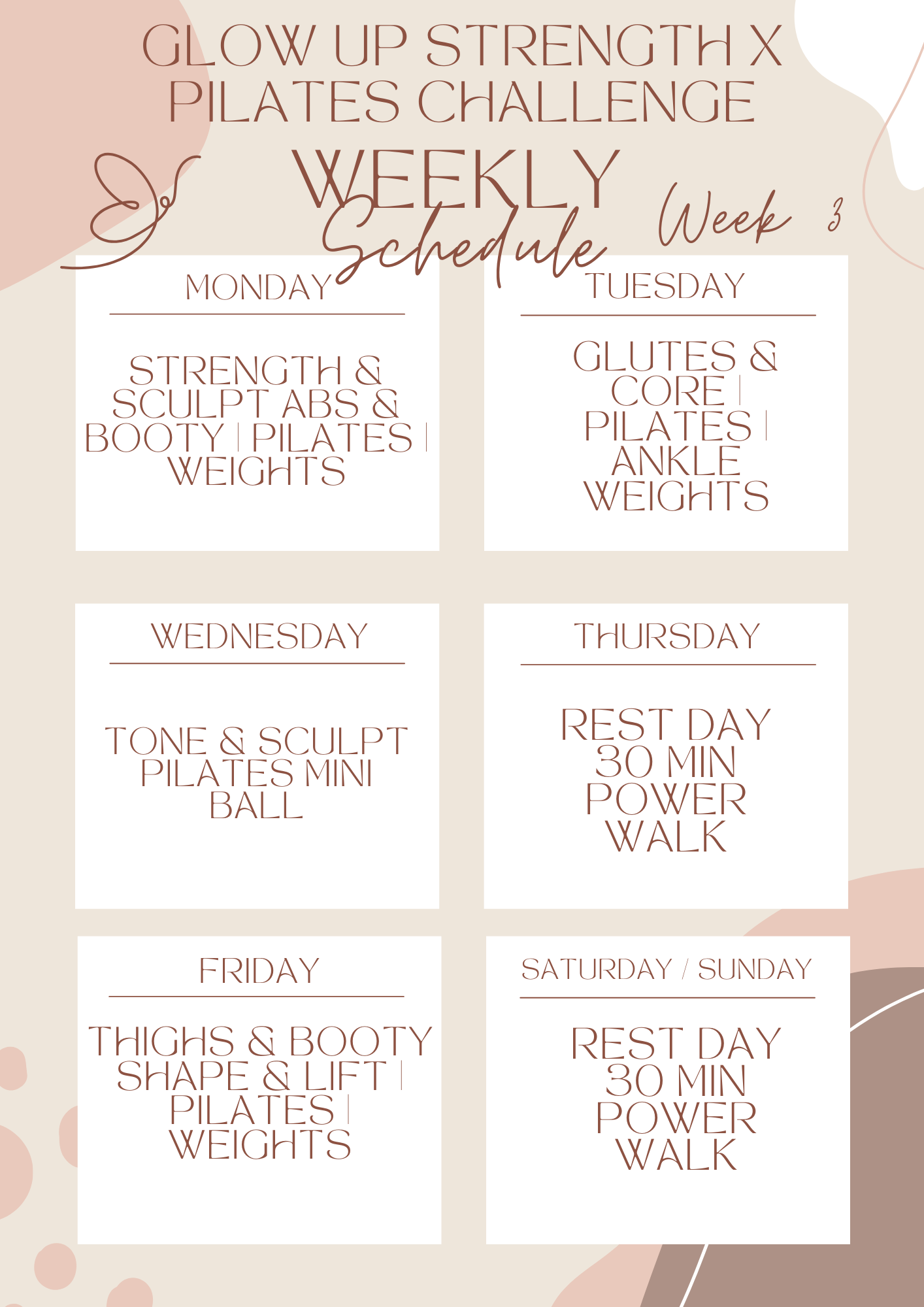 Strength x Pilates Glow Up Challenge Schedule Suggestion Week 3