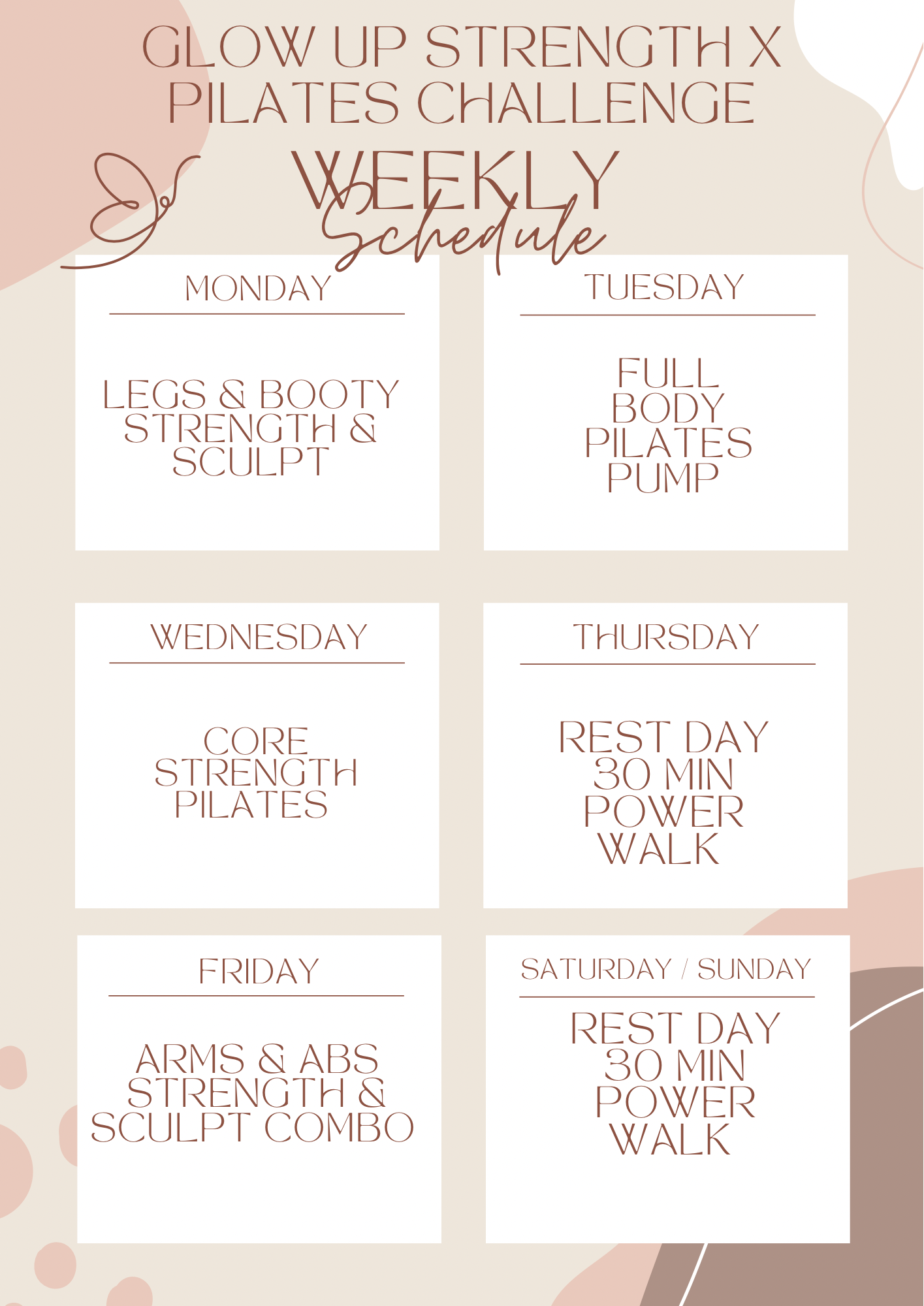 Strength x Pilates Glow Up Challenge Schedule Suggestion & meal plan guides✨💗📈.