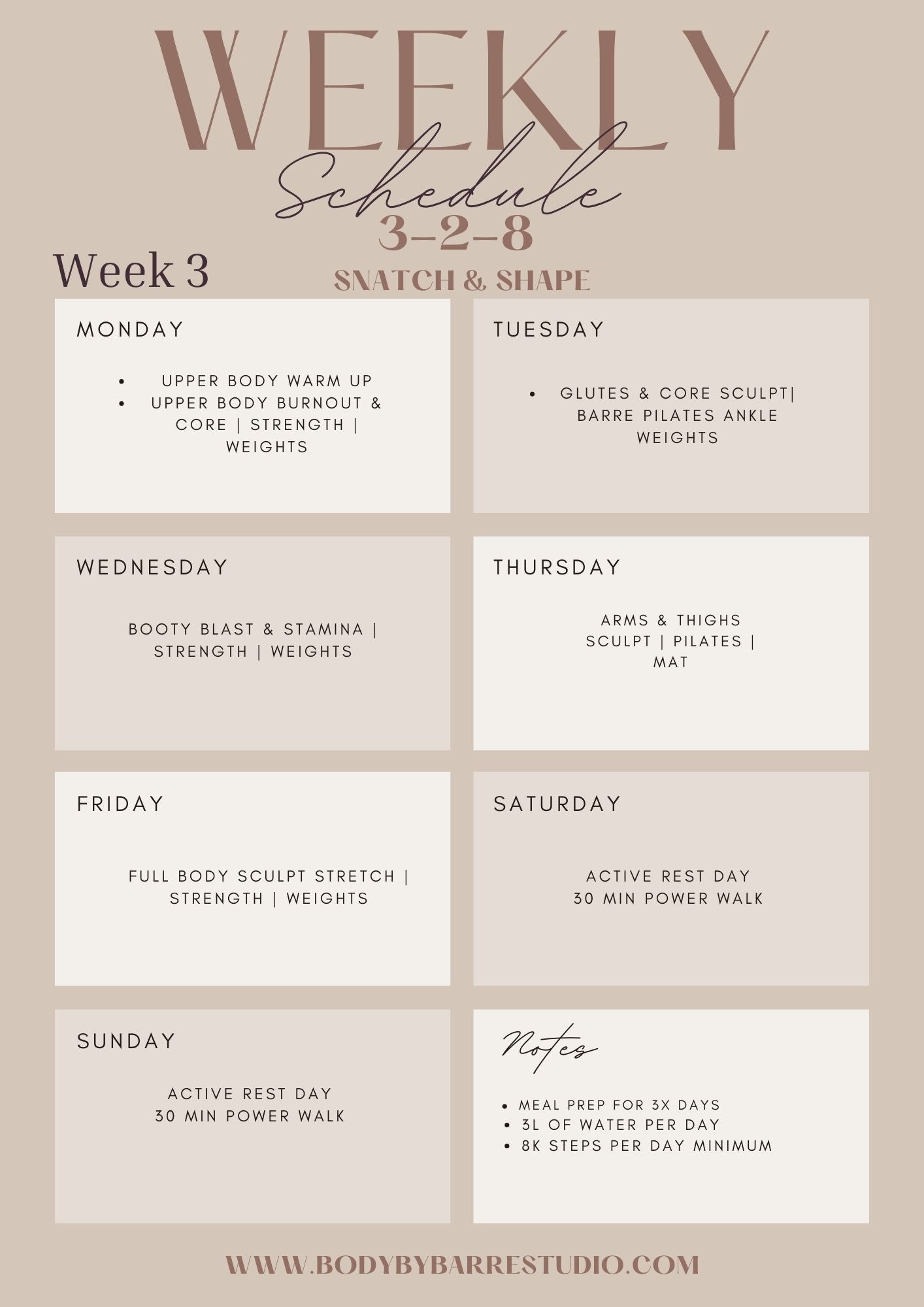 We move back to 3x barre/pilates & 2x strength while still prioritising form and conditioning.