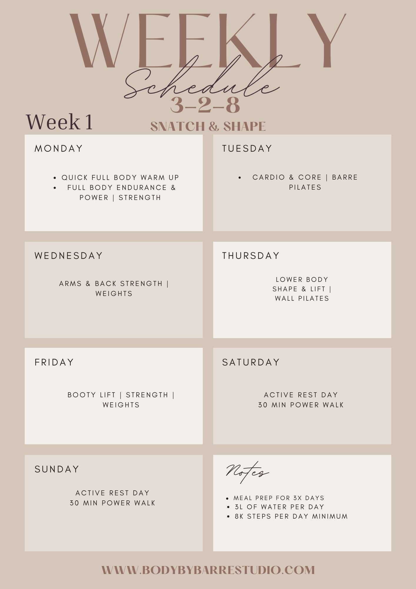 Weekly schedule & recipe guide attached via 'resources'
