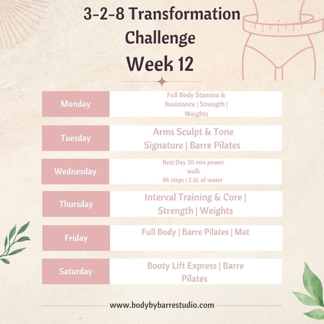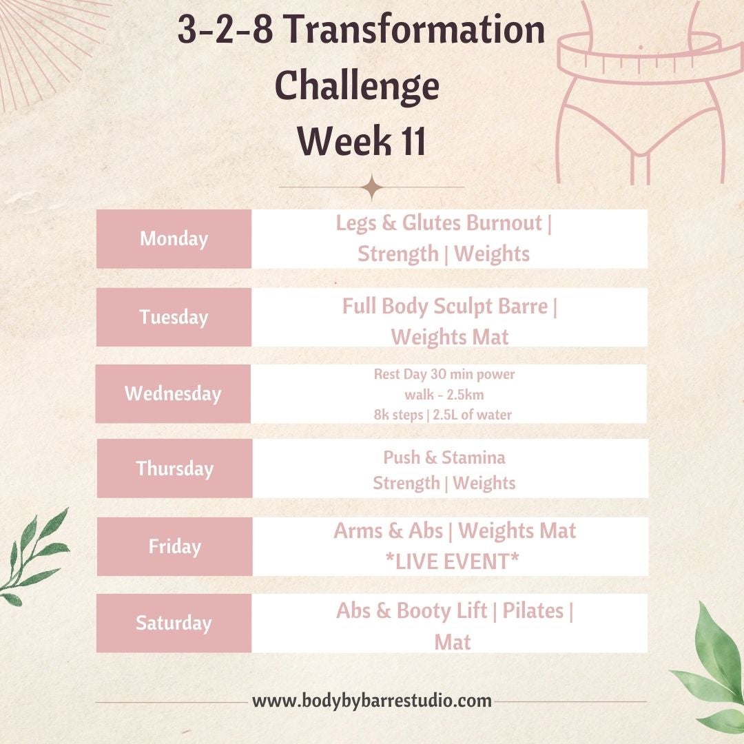 We will be following the same format of the 3-2-8 mixing weights, barre, pilates & walking.