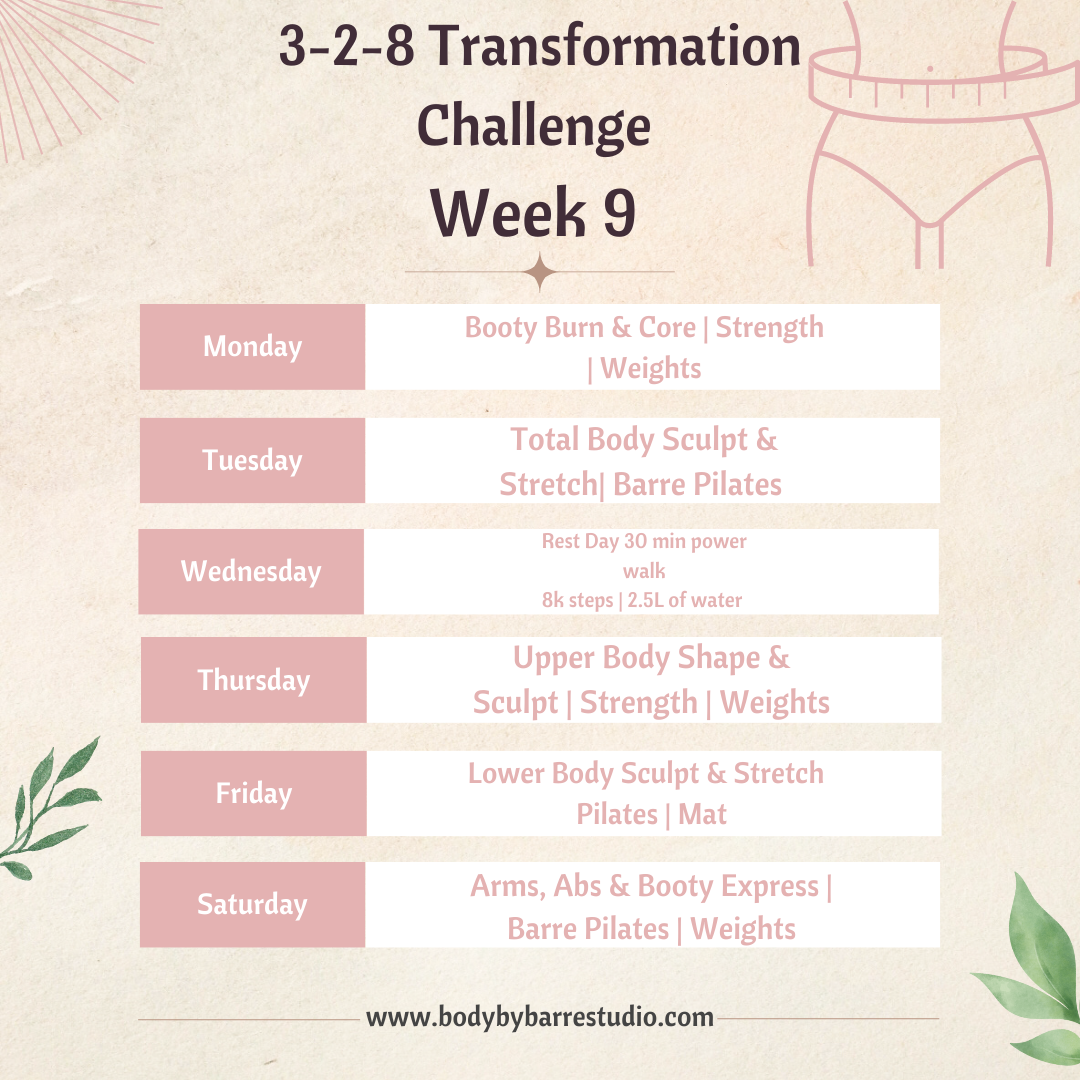 We will start Monday strong with a Full Body Burnout, hitting all the main muscle groups, then we will sculpt with our signature Pilates Pump Workout before our next rest day/power walk!